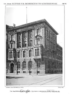 - ↑ Mohrenstraße 65: Abbruch. In: Berliner Adreßbuch, 1910, Teil III, S. 579. „E. Preuß. Hypotheken Akt.-Bank“.