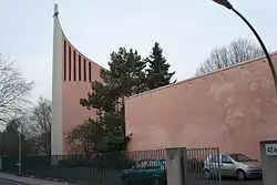 Die evangelische Festeburgkirche wurde 1969 für die seit 1963 für den südlichen Bereich Preungesheims zuständige Festeburggemeinde eingeweiht.