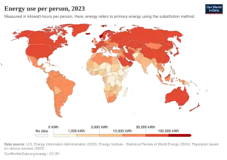 Bestandteil einer volkswirtschaftlichen Energiebilanz ist der Primärenergieverbrauch (auch Primärenergiebedarf). Ist die Primärenergiegewinnung eines Landes geringer als der Primärenergieverbrauch, so muss die Differenz durch Importe gedeckt werden. Sowohl Deutschland als auch fast alle Länder der Europäischen Union sind Nettoimporteure von Primärenergie, insbesondere von Öl, Gas und Kohle.[3] Die daraus resultierenden Monostrukturen führen zu Importabhängigkeiten, welche in einem Wirtschaftskrieg die Energiesicherheit gefährden können.