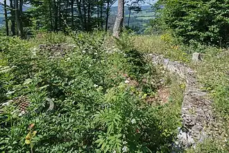 Diesem Vorwerk Im Osten vorgelagert und etwas tiefer am Berghang gelegen befindet sich ein zweites, etwa dreieckiges Plateau mit einem weiteren Vorwerk. Eine erkennbare Vertiefung im Gelände wird als möglicher Standort einer Zisterne gedeutet.[8] Am östlichen Abschluss dieser Anlage kann man im Gelände noch einen stark verschliffenen Wall erkennen.[20]
