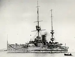 Die Hauptbewaffnung bestand aus vier 305-mm-Hinterladerkanonen in zwei Geschütztürmen, einer vorn und einer achtern. Die Geschütze waren auf 187 t schweren Lafetten mit einem Seitenrichtbereich von −150 bis +150 Grad montiert. Die Kanonen selbst wogen 47 t und hatten bei einer maximalen Elevation von 13,5° und einer Mündungsgeschwindigkeit von 716 m/s eine Reichweite von 13.590 m. Sie verschossen 386 kg schwere Granaten mit einer Kadenz von etwa zwei Schuss pro Minute.[6] Die Sekundärbewaffnung bestand aus zwölf 152-mm-Geschützen. Sie waren in Kasematten in zwei Geschützdecks mittschiffs untergebracht. Die Geschütze waren auf Lafetten mit einem Seitenrichtbereich von +30 bis +150 Grad montiert. Die Kanonen selbst wogen 2,2 t und hatten bei einer maximalen Elevation von 20° und einer Mündungsgeschwindigkeit von 544 m/s eine Reichweite von 9.050 m. Sie verschossen 20,4 kg schwere Granaten mit einer Kadenz von etwa fünf bis sechs Schuss pro Minute.[7] Außerdem trug sie sechzehn 76-mm- und zwölf 47-mm-Schnellfeuergeschütze zur Verteidigung gegen Torpedoboote. Darüber hinaus war sie mit fünf 457-mm-Torpedorohren ausgestattet, von denen vier auf der Breitseite im Schiffsrumpf eingelassen waren und das fünfte sich in einer auf dem Deck montierten Abschussvorrichtung am Heck befand.[3][5]