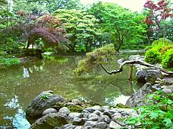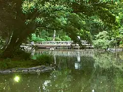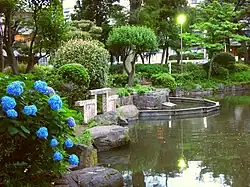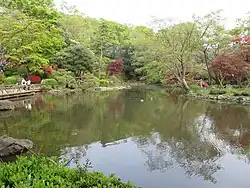 Der Park bewahrt die Idee des ursprünglichen Wandelgartens der Edo-Zeit. So besitzt er im unteren Teil einen bogenförmigen Teich, der von zwei Wasserläufen gespeist wird. Vor allem der tief eingeschnitten westliche Wasserlauf, der von einer kleinen Brücke überquert wird, gibt dem Park seine besondere Note.