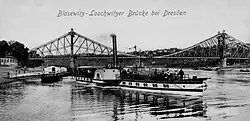 ![]() Raddampfer Prinz Friedrich August vor dem Blauen Wunder in Dresden