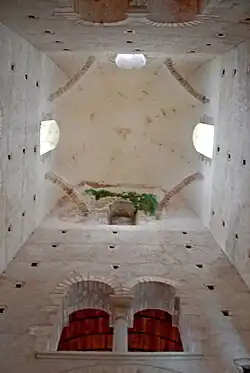 Zum Inneren wird hier auch die Architektur des zweiseitig offenen Portalvorbaus gerechnet.