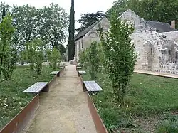 Ab 1988 erfolgte die Anlage von neun Gärten, die als Jardin remarquable ausgezeichnet worden sind. Nach umfangreichen Ausgrabungen zwischen 2009 und 2010 wurden 2015 die Gärten einer weiteren Renovierung unterzogen. Mit einheitlichen Materialien (Robinien- und Kastanienholz, oxidiertes Metall und Keramik) wurde ein geschlossenes Gesamtkonzept verwirklicht. Zwölf Themengärten mit entsprechenden Einfassungen lassen die Ausmaße der ehemaligen Gebäude wieder erkennen. Es wurden 75 verschiedene Obstsorten gepflanzt. Die sterblichen Überreste aus 420 Gräbern fanden im Dach der Kirche einen neuen Platz.