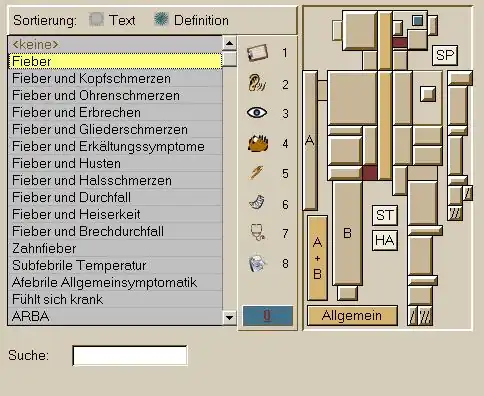 - Über ein Eingabefeld wird die Selektion nach Text, selbst angelegten Kürzeln oder ICD-10 gesteuert.