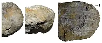 ?Gigantoproductus sp. ein Productide aus dem Ober-Viséeum von Suchoi Log, Sibirien (Russland). | ||||||||||