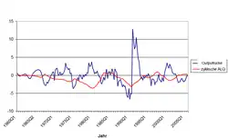 Eine positive Produktionslücke weist eine umgekehrte Wirkung auf. Die Produktionslücke basiert auf der potenziellen Wertschöpfung einer Volkswirtschaft, so dass vordergründig die Normalkapazität auf Grundlage statistischer Daten eines Landes zu bestimmen ist.