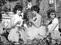 Erste Produktköniginnen wurden in den Vereinigten Staaten gekürt. Dort werden landwirtschaftliche Erzeuger seit Beginn des 20. Jahrhunderts von ihnen vertreten.[9] Am populärsten sind hier die Repräsentantinnen der Milchindustrie (Dairy Princesses).[9] Daneben gibt es in vielen Regionen Apple-, Farm-, Peanut-, Potatoe-, Pumpkin-, Tobacco- oder Turkey-Queens. Andere Hoheiten sind mit regionalen Veranstaltungen verbunden. So gibt es seit 1933 eine Rosenkönigin (Rose Queen) anlässlich des Tyler Rose Festivals in Tyler (Texas).[10] Besonders bei den Wahlen zu den US-amerikanischen Festivalköniginnen ist der Übergang zwischen Produkt- und Schönheitskönigin fließend. Eine Besonderheit ist der 1968 in Kalifornien initiierte Cherry Blossom Court. Die jeweils rund fünf Kirschblütenhoheiten, die zum jährlichen Cherry Blossom Festivals gewählt werden, vertreten US-Amerikaner japanischer Herkunft und sollen der Festigung des japanisch-amerikanischen Verhältnisses dienen.[11] In den 1950er und 1960er Jahren wurden – ebenfalls in Kalifornien – Weinköniginnen gekürt.[12] Bereits seit 1931 werden in Deutschland Weinköniginnen und seit 1985 auch Milchköniginnen (Bayerische Milchkönigin) gewählt. Eine größere Bedeutung haben im süddeutschen Raum auch Königinnen im Umfeld der Bierherstellung (z. B. die Bayerische Bierkönigin, die Württembergische Bierkönigin, die Rettenberger Bierkönigin oder die Hallertauer und Haunstetter Hopfenköniginnen).