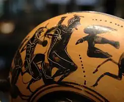Kultische Verehrung scheint Prometheus nur in Athen in größerem Ausmaß genossen zu haben. Nach einer umstrittenen Hypothese war er der Schutzgott mancher Handwerker, insbesondere der Töpfer.[61] In dem Akadḗmeia genannten Hain im Nordwesten von Athen außerhalb der Stadtmauer befand sich im 5. Jahrhundert v. Chr. ein Prometheus-Altar. Von dort ging ein Fackellauf in die Stadt aus, der Wettkampfcharakter hatte und jährlich am Festtag des Gottes stattfand. Die Festlichkeiten dienten der Vergegenwärtigung und wohl auch der rituellen Erneuerung des Aktes, mit dem Prometheus das Feuer gebracht hatte.[62]