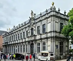 Die ausgeprägte barocke Formensprache ist von der Antwerpener Barockarchitektur des 17. Jahrhunderts geprägt und ist ein Unikum in der Brügger Innenstadt. Die monumentale Tür diente als Tor für Pferde und Kutschen. Oben steht Justitia und auf dem höchsten Fronton befinden sich die griechischen Götter der Wahrheit, Wohltätigkeit und Gerechtigkeit. Die vielen Skulpturen wurden vom Brügger Bildhauer Cornelis Gailliaert ausgeführt.