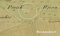 Die Bezeichnung Jungen Prosset war auch für Rieden bei Winzendorf üblich (die überwachsenen Terrassen am Weg zur Waldandacht). Weitere Flur- und Riedenbezeichnung im Zusammenhang mit der Prosset sind der Prossaberg und die Prossetwiesen (heute Curti- und Schafflersiedlung in Winzendorf). Die Qualität der Wiesen war eher schlecht, da häufig versauert, mosig und in nassen Jahren mit Rohr und Binsen durchwachsen.[11] Erst die Entwässerung ab 1899, ein Teil unterhalb des Teiches im Park des Alexander Curti (nach dem Römerweg abwärts) wurde reguliert, brachte Besserung.[20]