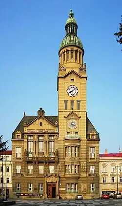 • Neues Rathaus – errichtet 1911–1914 nach Entwurf des Brünner Architekten Karel Hugo Kepka.
