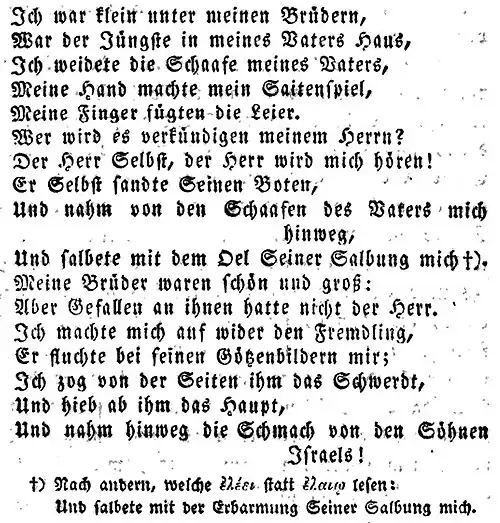 Klein war ich unter meinen Brüdern, / der jüngste der Söhne meines Vaters,