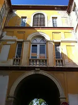 Im ursprünglichen zentralen Trakt, der noch aus dem Mittelalter rührte, liegt der Haupteingang des Hospitals: Hier bezeugt eine Marmorplatte über dem Tor die ursprüngliche Nutzung des Gebäudes als Zuflucht und Hilfsort für Kranke und Bedürftige. In der Nähe dieses Eingangs liegen die Pförtnerloge, das Haupttreppenhaus, der Aufzug, der Zugang zu den zwei Innenhöfen sowie die Wohnung der Nonnen. Unter dem Bogen der Porta Melatina finden sich zwei schmiedeeiserne Tore: das eine als Zugang zum Hospital, das andere als Eingang zur Kirche Sant’Antonio Abate.