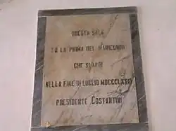 Eine Steintafel in diesem Saal erinnert heute an dieses Ereignis: Dieser Saal war der erste der Nervenheilanstalt. Er wurde im Juli 1881 eröffnet. Präsident Costantini.