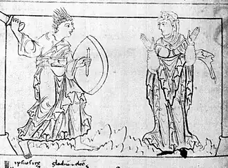 - Mittelalterliche Illustrationen der Kampfszenen der Psychomachia (englisch)