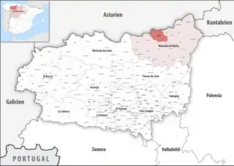 Puebla de Lillo liegt etwa 70 Kilometer nordnordöstlich von León in einer Höhe von ca. 1135 m.