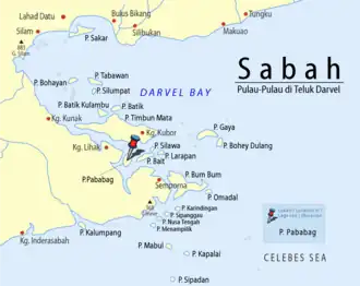- ↑ Topographische Karte 1:90.000: Negeri Sabah Bahagian Tawau Daerah Semporna; Hrsg. Jabatan Ukur & Permetaan Malaysia, 1. Ausgabe, 2010