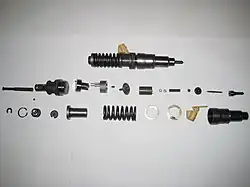 Das Pumpe-Düse-System (englisch Unit Injector System) ist ein Einspritzsystem für Verbrennungsmotoren. Die wesentliche Eigenart ist die eigene Einspritzpumpe für jeden Zylinder in einem gemeinsamen Gehäuse mit der Einspritzdüse.[1] Die den schnellen Druckaufbau behindernden Druckleitungen zwischen Pumpe und Düse werden so vermieden.