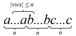 Für jede kontextfreie Sprache gibt es eine natürliche Zahl , sodass gilt: Jedes Wort in mit Mindestlänge hat eine Zerlegung mit den folgenden drei Eigenschaften: