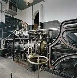 Der Schornstein steht auf einem hohen, vermutlich später verputzten Sockel. Zum Inventar des Maschinenraums gehört eine liegende Einzylinder-Dampfmaschine mit Ventilsteuerung, geliefert von der Maschinenfabrik „De Atlas“ in Amsterdam im Jahr 1856, außerdem das Getriebe mit gusseisernen Rädern und Schwungrad (Durchmesser 8 m), sowie einiges Werkstattzubehör (darunter ein Brett mit alten Werkzeugen).