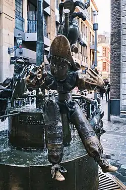 Der kreisförmig angelegte Brunnen aus Bronze stellt verschiedene Merkmale durch Figuren und Masken dar, welche für Aachen in Teilen charakteristisch oder von geschichtlicher Relevanz wären. Hierbei liegt die Beweglichkeit der jeweiligen Elemente der Figuren im Vordergrund, welche den Betrachter zur stetigen Umgestaltung bewegen. Dieses Merkmal wird vom Künstler auch in anderen seiner Werke genutzt, wie auch am Kurgastbrunnen in Bad Soden oder der Fabelskulptur "Märchenfiguren" an der Kirche St. Gregorius in Aachen-Burtscheid.