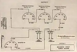 Anstelle von Rotoren verwendete Purple gestaffelt hintereinander liegende Wählschalter, wie sie auch in Telefonvermittlungsstellen eingesetzt wurden. Das Grundelement war ein elektromechanischer Schalter mit einem sechspoligen Eingang und einem Arm, der auf 25 verschiedene Ausgangs-Positionen geschaltet werden konnte. Der Arm wurde von einem Elektromagneten bewegt und um je eine Position weitergeschaltet, bis zum Erreichen der letzten Position, von der er mittels Feder wieder in die Ausgangsstellung zurückfuhr.