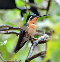 - Lampornis calolaemus pectoralis (Salvin, 1891)[3] kommt im Süden Nicaraguas und dem nördlichen zentralen Costa Rica vor. Diese Unterart ist kleiner und auf der Unterseite am dunkelsten von allen Unterarten. Das Männchen hat eine dunkel grün glitzernde Brust.[1]
