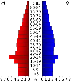 22,3 Prozent der Bevölkerung waren unter 18 Jahre alt, 14,7 Prozent zwischen 18 und 24, 27,9 Prozent zwischen 25 und 44, 21,9 Prozent zwischen 45 und 64 und 13,2 Prozent waren älter als 65. Das Durchschnittsalter betrug 34 Jahre. Auf 100 weibliche Personen kamen statistisch 98,4 männliche Personen und auf 100 Frauen im Alter von 18 Jahren und darüber kamen 96,7 Männer.