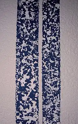 - Kratzputz: Etwa 12–36 Stunden nach dem Auftrag, also noch vor dem endgültigen Erhärten, wird die oberste Putzschicht wieder abgekratzt, etwa mit Nagelbrett (Putzigel oder Stahlnagelkartätsche).[5] Dies ergibt einen rauen, aber rissfreien Putz, da die spannungsreiche Sinterschicht entfernt wird, die sich beim Auftragen von feinen und mittelfeinen Putzen bildet, weil das Bindemittel an die Oberfläche wandert. Wird der Kratzputz nicht überstrichen, ergibt sich ein gewisser Selbstreinigungseffekt durch das langsame Absanden des der Witterung ausgesetzten Putzes. Meist werden Korngrößen bis 4 oder 6 mm verwendet, früher sogar bis zu 16 mm. Als Auftragsstärke wird oft der dreifache Korndurchmesser gewählt. Nach dem Auftrag kann der Putz mit der Zahnkartätsche geebnet und verdichtet sowie mit der Traufel geglättet werden. Nachdem er angezogen hat, wird der Putz mit Nagelbrett, Stahlklinge oder grobem Sägeblatt gekratzt, sobald das obenliegende Korn dabei leicht aus dem Putz herausspringt und nicht mehr am Werkzeug haftet.[9]
