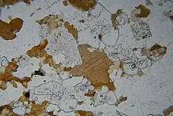 - ↑ Friedrich Klockmann: Klockmanns Lehrbuch der Mineralogie. Hrsg.: Paul Ramdohr, Hugo Strunz. 16. Auflage. Enke, Stuttgart 1978, ISBN 3-432-82986-8, S. 678 (Erstausgabe: 1891).
