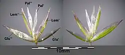 - ↑ Hans Joachim Conert: Familie Poaceae. In Gustav Hegi: Illustrierte Flora von Mitteleuropa. 3. Auflage, Band I, Teil 3, Seite 267–269. Verlag Paul Parey, Berlin und Hamburg 1987. ISBN 3-489-52020-3.