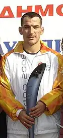 Pyrros Dimas mit der olympischen Fackel | |||||||||||||||||||||||||||||||||||||||||||||||||||||||