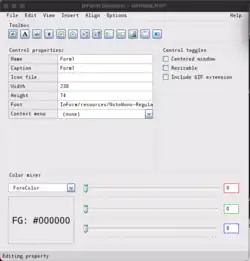 InForm ist ein Rapid-Application-Development-Werkzeug für QB64 mit einem WYSIWYG-Editor und einer grafischen Bibliothek, mit dem dialogorientierte Software für grafische Betriebssysteme entworfen werden kann, um ein ereignisgesteuertes QB64-Programm zu generieren.