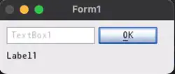 Im folgenden Beispiel-Code wird das Ereignis Click auf der Schaltfläche mit der Beschriftung „OK“ ausgewertet, um damit den Text des Eingabefeldes dem Label zuzuweisen:
