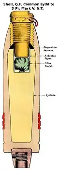 | 3pdr Munition ca. 1898 | Bodenzünder Mk IV | Sprenggranate Mk V N.T. 1914 |