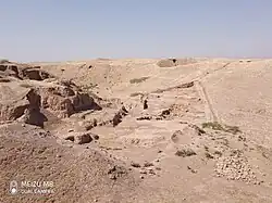 Der Haupthügel hat eine Fläche von etwa 8 Hektar und erhebt sich etwa 30 Meter über die Ebene. Es wird im Nordosten von einer Schlucht durchschnitten, von der man annahm, dass sie sich an der Stelle des alten Tores befand. Eine Unterstadt erstreckt sich südlich des Tells und umfasst etwa 60 Hektar. Die Fläche innerhalb der neuassyrischen Stadtmauer beträgt etwa 50 Hektar. Auch das Gebiet außerhalb des Hauptgeländes weist Anzeichen einer Besiedlung auf. Der südlichste Teil des Geländes liegt unter einem modernen Dorf. Es sind auch Bombenkrater vom Irakkrieg 2003 zu sehen.[1]