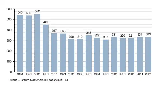 - ↑ Bilancio demografico e popolazione residente per sesso al 31 dicembre 2024. ISTAT. (Bevölkerungsstatistiken des Istituto Nazionale di Statistica, Stand 31. Dezember 2024).