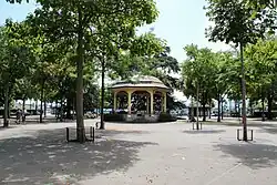 Anschliessend an die Realisierung der Quaianlagen wurden auf Initiative der Gemeinde Riesbach auch noch das anschliessende Zürichhorn in einen grossen Park verwandelt, der aber später wiederholt Umgestaltungen erfuhr.[3] Die «Landiwiese» als Fortsetzung der Parkanlagen am westlichen Ufer wurde für die Landesausstellung 1939 aufgeschüttet.