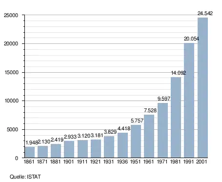 - ↑ Bilancio demografico e popolazione residente per sesso al 31 dicembre 2024. ISTAT. (Bevölkerungsstatistiken des Istituto Nazionale di Statistica, Stand 31. Dezember 2024).