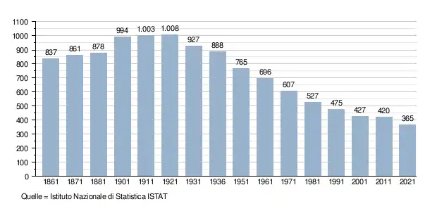 - ↑ Bilancio demografico e popolazione residente per sesso al 31 dicembre 2024. ISTAT. (Bevölkerungsstatistiken des Istituto Nazionale di Statistica, Stand 31. Dezember 2024).