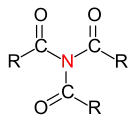 - ↑ Laut IUPAC-Nomenklatur sind sekundäre, bzw. tertiäre Amide mit zwei, bzw. drei Acylgruppen am Stickstoff substituiert. Da jedoch im allgemeinen Gebrauch primäre Amide mit einer Acylgruppe und zwei Kohlenwasserstoffsubstituenten am Stickstoff „tertiäre Amide“ genannt werden, wird die Klassifizierung in primäre, sekundäre und tertiäre Amide nicht empfohlen. Eintrag zu Amide. In: Römpp Online. Georg Thieme Verlag, abgerufen am 15. Mai 2019.