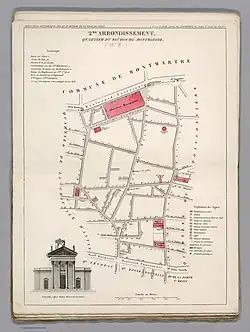 Plan des Quartier du Faubourg Montmartre im Ancien 2e arrondissement de Paris von 1834