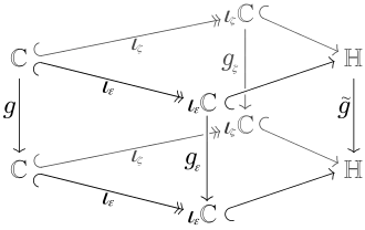 Des Weiteren ist die Orientierung des Dreibeins in gespiegelt. Die Identität auf der Grundmenge ist ein Antiisomorphismus und die Konjugation ein Isomorphismus.
