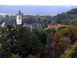 Schlossbergensemble mit Stiftskirche, Blick vom Münzenberg, 2018