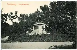 Am 30. September 1890 wurde die Bevölkerung aufgerufen für ein Denkmal zur Erinnerung an die Gefallenen und Verwundeten der Kriege von 1866 und 1871 Geld zu spenden. Wichtigster Förderer des Denkmals war der Amtsrichter Hahn, der dafür später den Roten Adlerorden 4. Klasse erhielt. Ein Verein für die Errichtung eines Siegesdenkmals zu Quedlinburg war gegründet worden. Besonderes Gewicht wurde dabei auf den Beitrag des Kürassier-Regiment „von Seydlitz“ (Magdeburgisches) Nr. 7 in der Schlacht von Mars-la-Tour am 16. August 1870 gelegt.