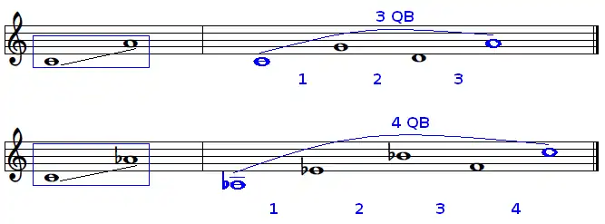 Das Intervall der großen Sexte (z. B. C-A) besitzt eine Quintenbreite von 3 QB (C-G-D-A), eine kleine Sexte (z. B. C-As) besitzt eine Quintenbreite von 4 QB (As-Es-B-F-C)