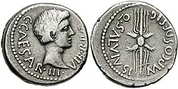 - ↑ Auf Münzen, die er während seines gallischen Prokonsulats prägte, nannte er sich Q. Salvius. Ronald Syme (The Roman Revolution, Oxford 2002, S. 129) hielt es für möglich, dass er seinen nicht-römischen Gentilnamen auf diese Weise romanisierte; D. R. Shackleton Bailey (Two studies in Roman nomenclature, 1976) hat vorgeschlagen, dass er von einem Salvius adoptiert wurde.