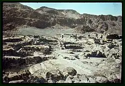 - ↑ Gustaf Dalman: Jahresbericht … des Deutschen evangelischen Instituts für Altertumswissenschaft des heiligen Landes für das Arbeitsjahr 1913/14. Die Ausflüge. In: Palästinajahrbuch des Deutschen evangelischen Instituts für Altertumswissenschaft des heiligen Landes, Band 10, Berlin 1914, S. 7–28, hier S. 9f. (Digitalisat)